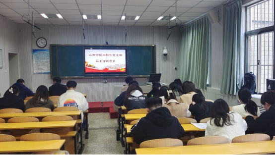 本科生党支部2022年度工作报告、通报党支部委员会查摆问题情况,在汇报后发放了党支部委员会民主评议表通过无记名投票的方式接受党员评议。