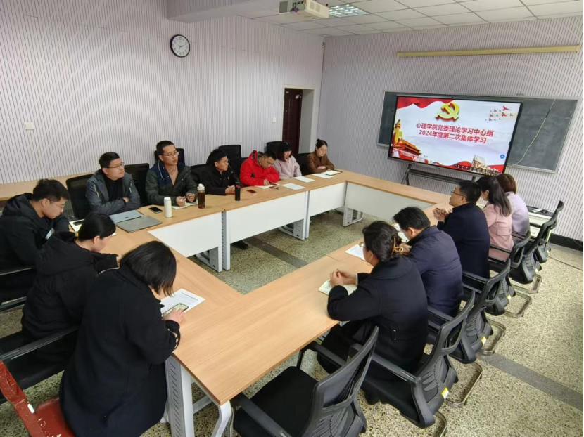 党委理论学习中心组在201会议室举行了2024年度第二次集体学习活动。理论中心组成员出席会议,基础心理学教研室主任杨庆、发展与教育教研室主任陈圣栋、应用心理学教研室主任王修欣列席会议,会议由学院党委书记罗文伟主持。