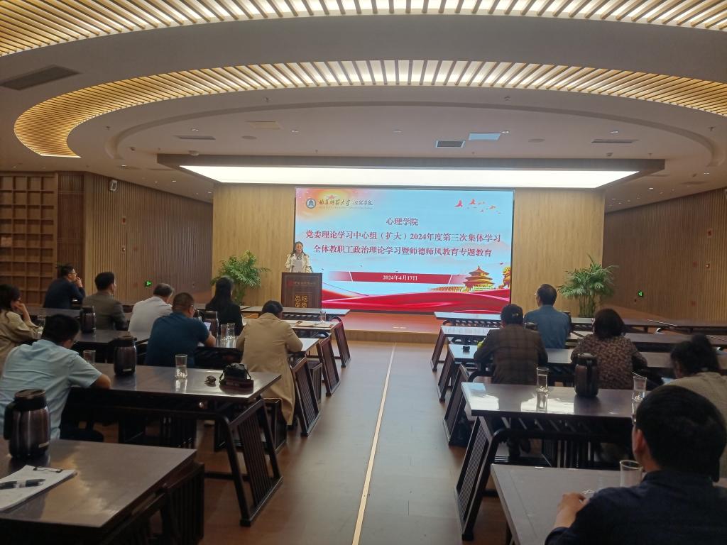 教职工政治理论学习制度》,学院党委副书记朱伟卫领学了《习近平总书记在湖南第一师范学院考察时的重要讲话》。