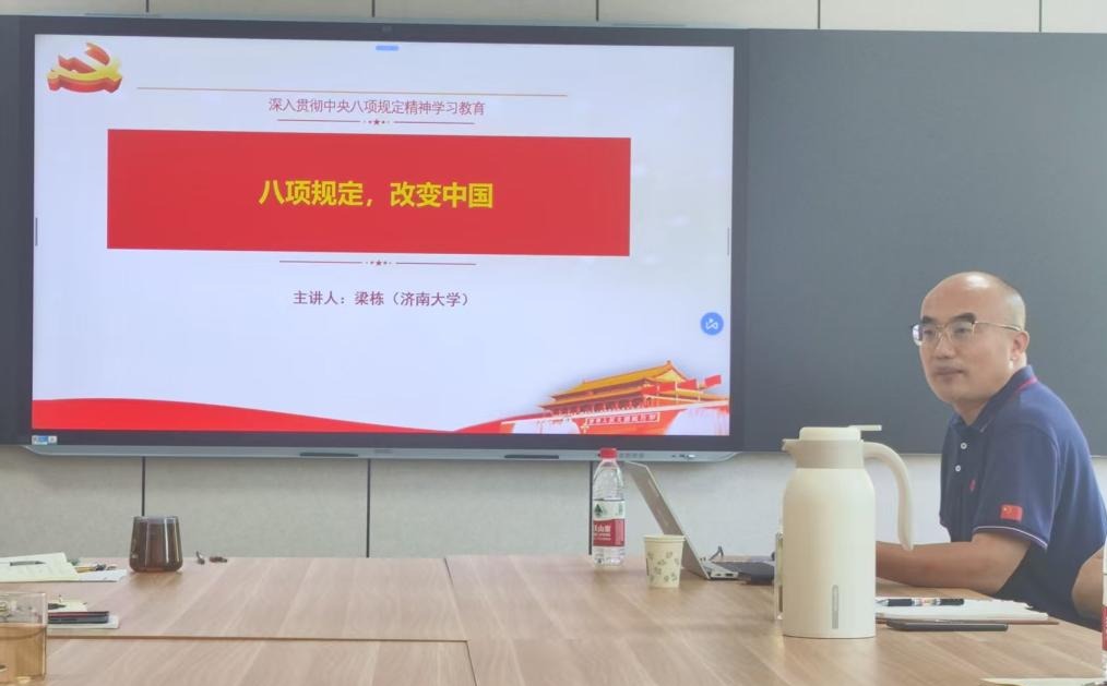 党委理论学习中心组在308会议室举行了2025年度第七次集体学习活动。理论学习中心组成员参加集体学习会议,会议由学院党委书记罗文伟主持。本次集体学习特邀济南大学马克思主义学院副教授、法学博士、中国社会科学院人才学(社会学)博士后梁栋作深入贯彻中央八项规定精神学习教育专题报告。