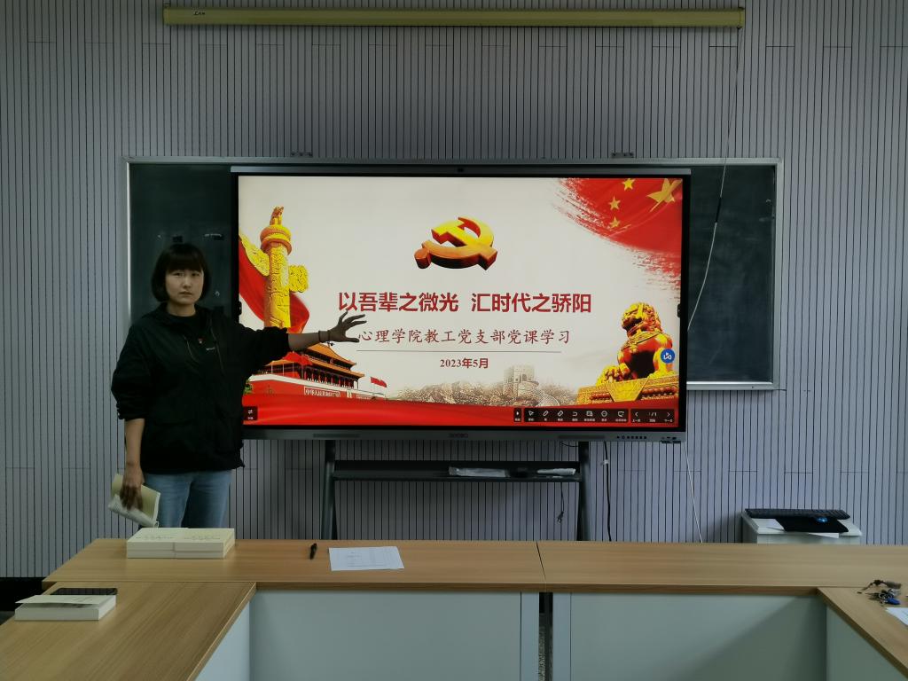 罗文伟以“大兴调查研究——党建引领学科专业社会服务水平提升”为主题,首先带领大家共同学习了中共中央办公厅印发的《关于在全党大兴调查研究的工作方案》,并结合自身学习领悟,联系学院实际工作,从以社会服务激发心理学学科专业特色活力、以党建引领学科专业社会服务力量、以调查研究提升学科专业社会服务水平三个方面和大家进行了深入交流。