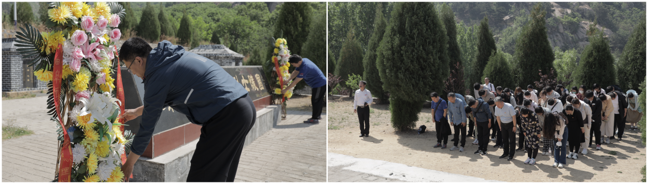 全体党员同志齐聚徂徕山革命纪念园,共同缅怀革命先烈之丰功伟绩,寄托无限哀思与崇高敬意。党员同志们在徂徕山抗日武装起义磨山峪旧址感受革命先烈英勇斗争之精神。行至烈士陵园,党委书记罗文伟和学院院长何文广敬献花篮,缅怀英烈,表达对革命先烈的敬意与对党的忠诚,同志们瞻仰烈士陵园,深感革命先烈伟大斗争精神。