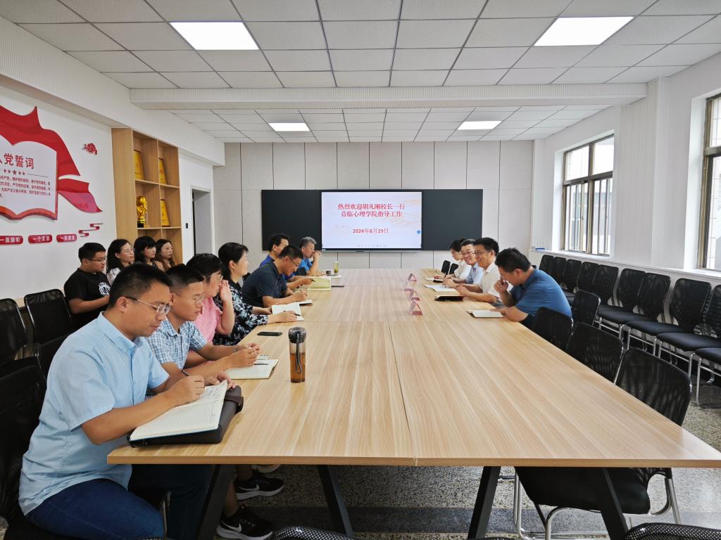 何文广代表学院对胡凡刚副校长一行的莅临指导致以诚挚的感谢。他表示,学院将认真落实学校的指导意见,凝聚共识,形成合力,团结带领全体教职工,以强烈的使命担当,认真贯彻落实相关工作要求,不断提升学院的综合实力,为社会培养更多优秀的心理学专业人才。