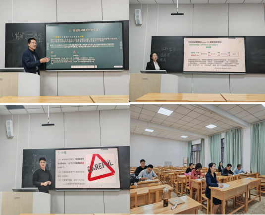 本次比赛共有3位教师参赛。陈圣栋老师以“情绪与社会关系”为主题,深入浅出地阐述了情绪对社会关系的重要性、情绪如何建立社会关系以及社会关系如何影响情绪;杜雅楠老师围绕“注意的认知理论”,系统讲解了过滤器理论、衰减理论、后期加工理论和多阶段选择理论;袁光杰老师则以“德西理论”为核心,详细介绍了德西理论的主要内容、应用及相关研究。