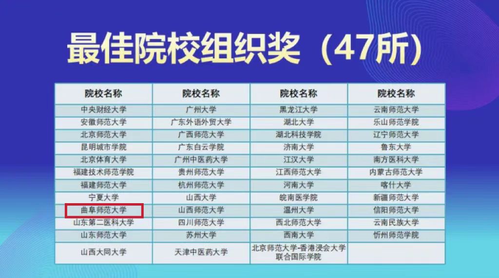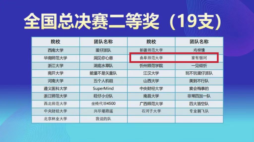 我院共有20支队伍参加校级选拔赛,其中获得校级一等奖的队伍进入分区赛竞赛。在6支队伍晋级分区赛的队伍中,共获得分赛区竞赛一等奖2项、二等奖3项、三等奖1项。其中,获得分赛区竞赛一等奖的“海底小纵队”“家有银珂”两支团队顺利晋级全国总决赛,与来自四个赛区的其他58支队伍展开了激烈的角逐。最终,“海底小纵队”获得全国总决赛特等奖,指导老师王修欣副教授获年度十佳指导教师、优秀指导教师称号;“家有银珂”获全国总决赛二等奖,指导老师王晓明副教授获优秀指导教师称号;PODO漫画 获得“最佳院校组织奖”。