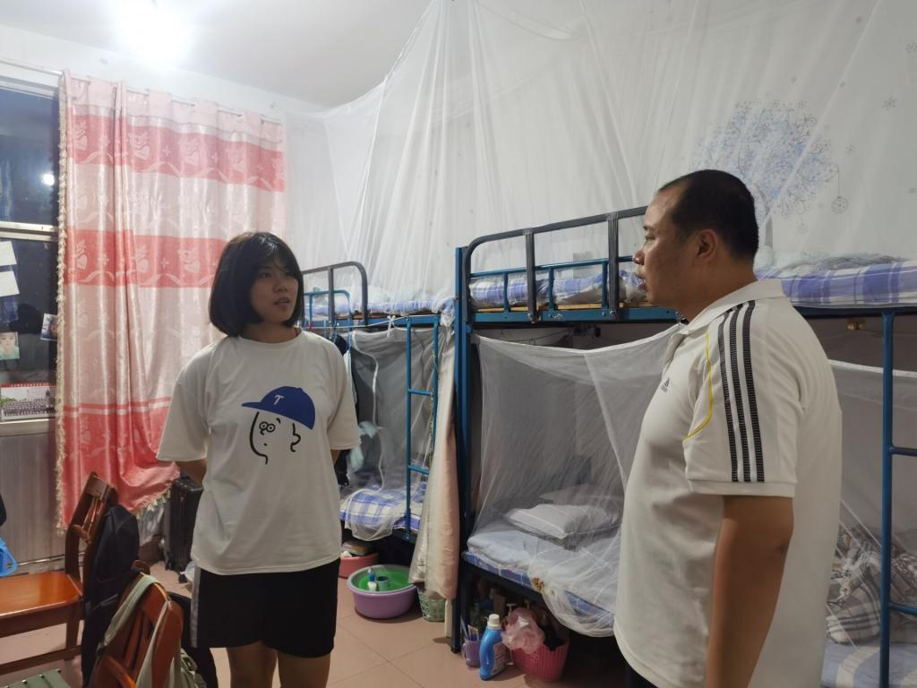 9月12日晚,学院领导、老师走进宿舍看望并慰问新生,分别走访了西公寓四号楼、六号楼以及北公寓三号楼、五号楼,走进宿舍与新生亲切交谈,对新生提出的问题进行详细的解答,关心新生是否适应校园环境,提醒同学们注意身体和宿舍安全等,并给新生提出舍友和睦相处、互帮互助、监督学习的建议,希望新生调整心态、适应校园生活,及时全身心地投入到学习生活中去。