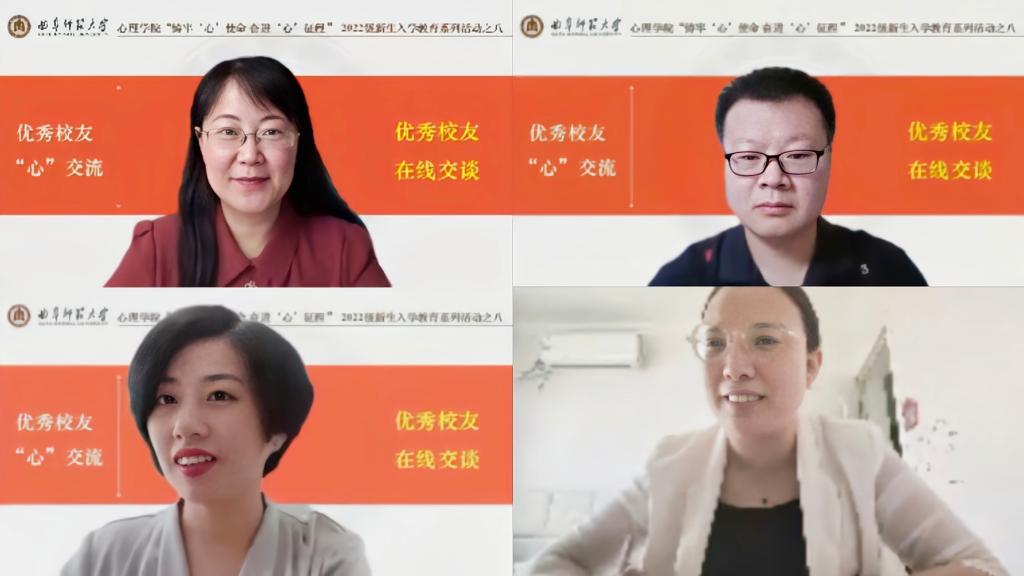 李海青主持王云强、王琳、杨丽敏三位优秀校友代表在线交流