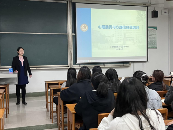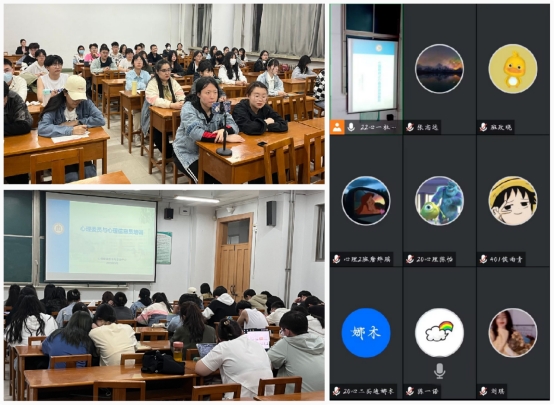 辅导员薛翠主讲,学院团委学生会心理健康服务部成员,各班心理委员、心理信息员、舍长踊跃参与。