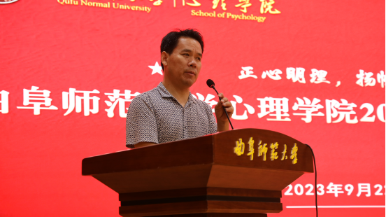 学院优秀在校生代表、第二届学生会主席刁子桐发言。刁子桐寄语2023级师弟、师妹们珍惜大学时光,打破高中时对大学错误的刻板印象,既要目标高远、学海泛舟,又要培养兴趣、强化能力,在加强专业学习的同时,积极参与创新创业和竞赛活动,踊跃投身团委学生会等个人发展的有力平台,并用心理学的视角去看待周围的世界,保持热情、踏实前行,勇于行动、不留遗憾。