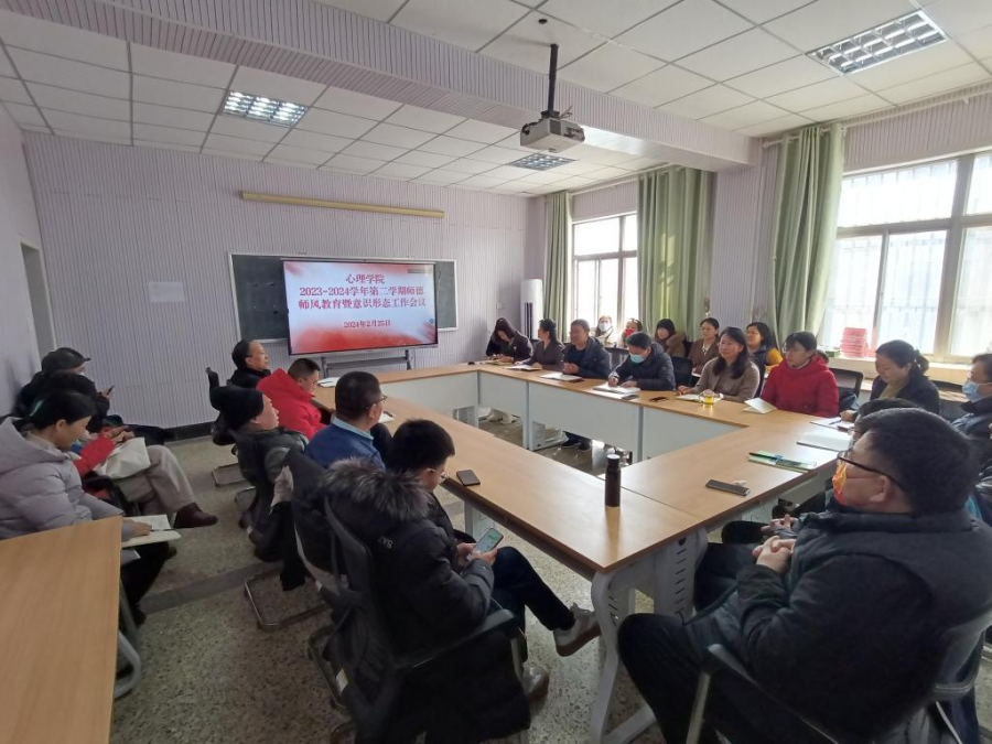 2023-2024学年第二学期师德师风教育暨意识形态工作会议,会议由党委书记罗文伟主持,学院全体教职工参加会议。