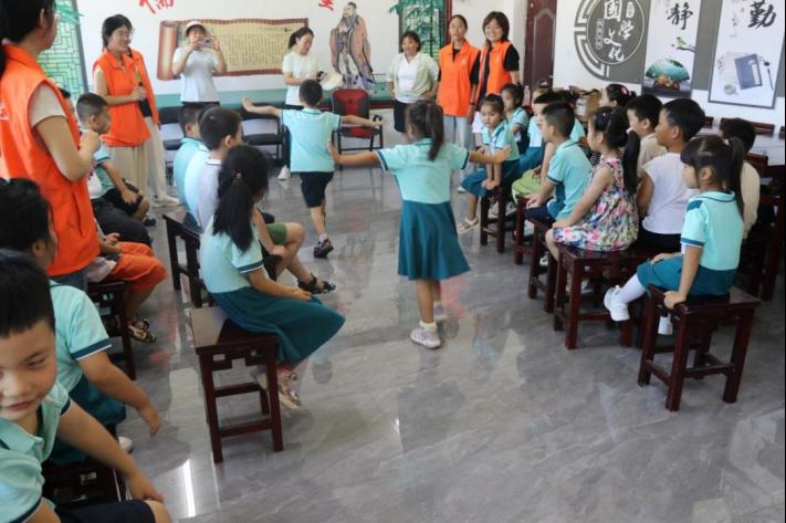 起初,孩子们显得有些羞涩和拘谨,但在实践团成员的鼓励和引导下,很快就理解了游戏规则融入了游戏中。随着游戏的进行,孩子们的笑声和欢呼声此起彼伏,整个活动现场洋溢着欢乐的气氛。“落单”表演节目的小朋友一开始支支吾吾地背古诗、讲故事,但实践团成员在每次节目结束后都会对小朋友们给予鼓励,“呀!你太棒啦”“让我们为这个小朋友鼓掌好不好呀”,渐渐地孩子们开始要踊跃报名要主动展示自己的才艺,比如唱歌、表演武术节目等。
