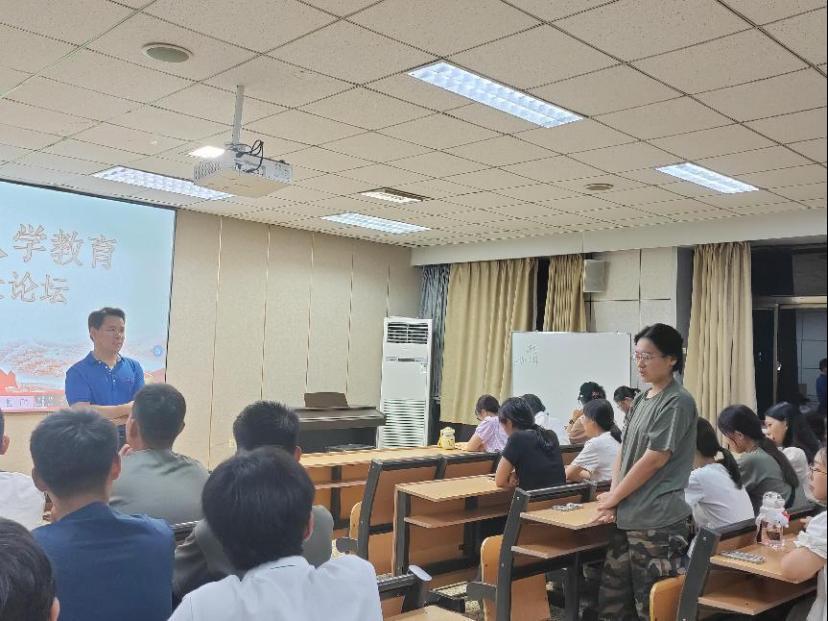 发展历程,从初创之艰辛至现今之繁茂,系统阐述了学院在学术研究、师资构建等方面的卓越成就,并深刻阐述了其背后的教育理念与责任担当。随后,何文广聚焦于学生关切的专业成长与个人发展议题,精准剖析心理学领域发展趋势,勉励新生顺应时代潮流,勇于创新探索,拓宽心理学研究的边界。他结合自身丰富的教学与科研经验,为新生提供了高效学习策略与职业规划的权威指导,助力其科学规划其大学生活及未来职业道路。最后,何文广以严谨而温暖的态度逐一回应新生关于专业学习路径、科研实践机会及就业前景等多元化提问,不仅精准解答了同学们的困惑,更激发了学子们对心理学专业的浓厚兴趣与崇高追求。