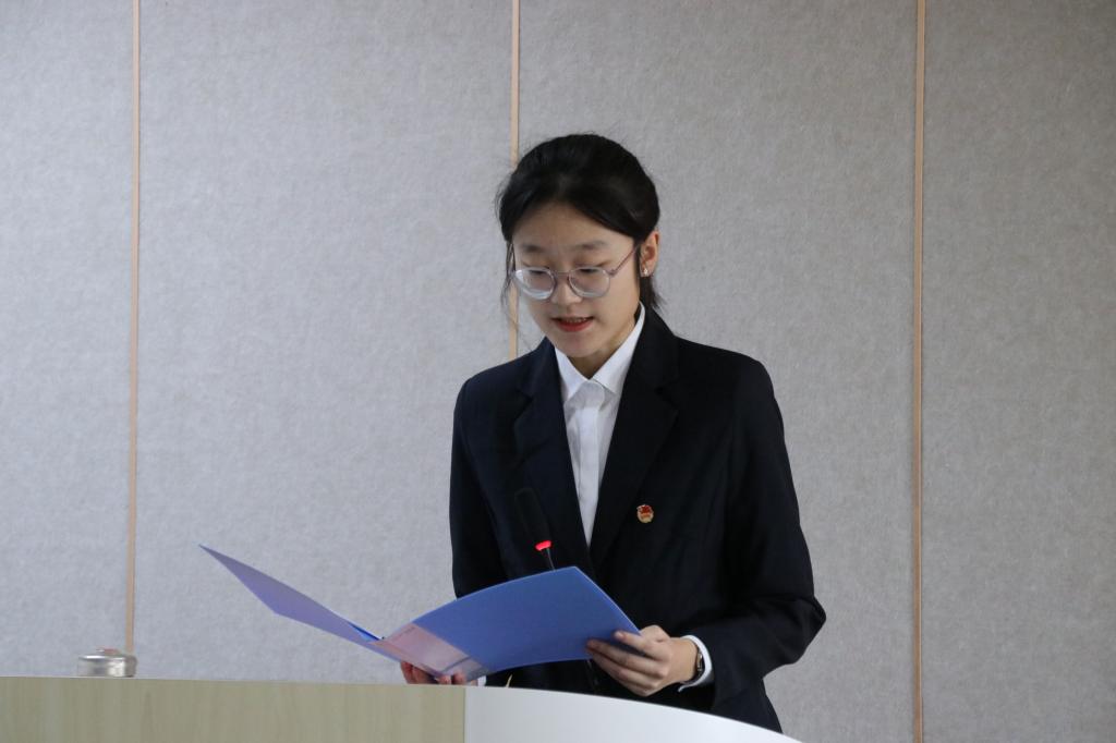 仪式第五项,学员代表、2023级心理一班团支书孙庆泽发言。她详细阐述了“青马工程”的含义与性质,指出青马工程是培养青年马克思主义者的摇篮,鼓励同学们借此机会深入学习理论、坚定信仰、投身实践、引领示范,以饱满热情和信念认真参与学习与培训,并将其付诸实际行动,为实现中国梦贡献自己的青春力量。