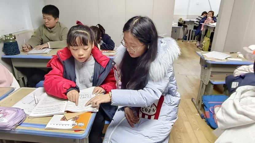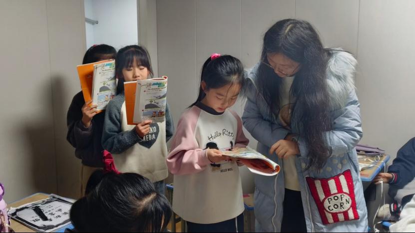 图3 “行路致远,践行真知”实践队员正在检查学生学习情况