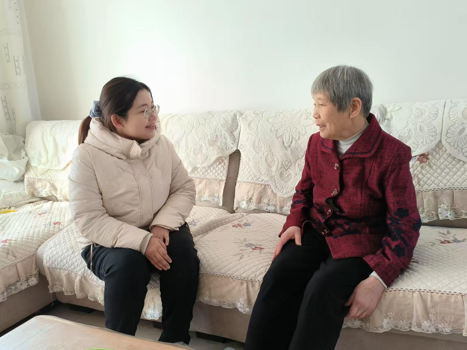 “微光如炬,情暖社区”实践队员到老奶奶的家中调研交流