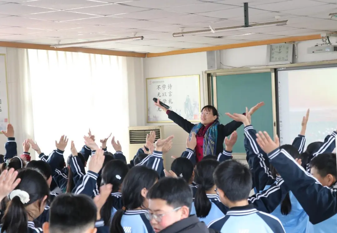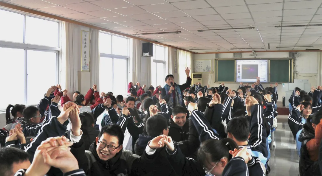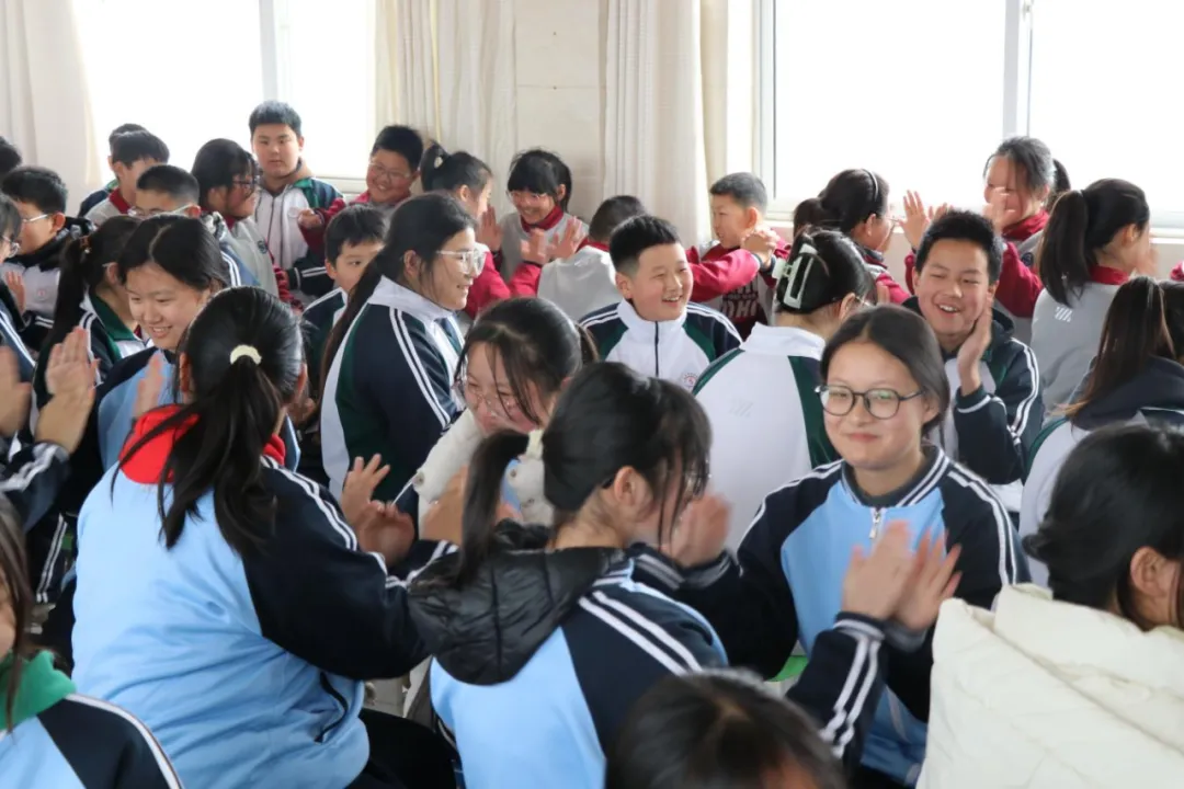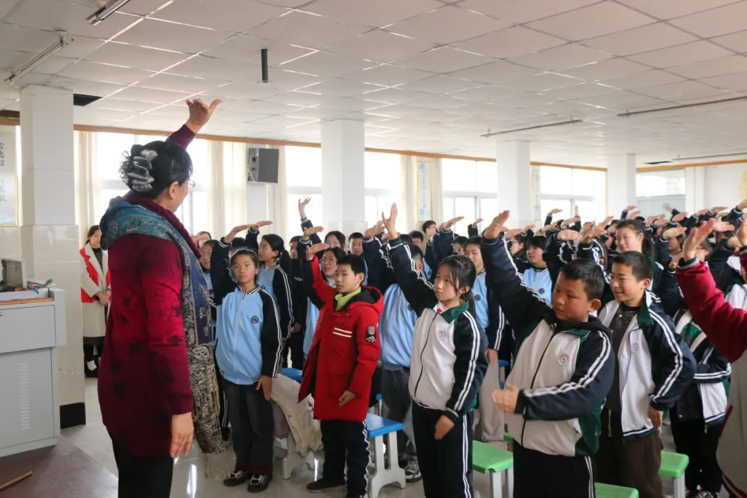 为调动学生积极性,活动巧妙融入肢体表达与音乐互动。全体学生跟随音乐跳起《眨眨眼睛震震翅膀》趣味操,通过动感的节奏和活力的动作释放压力、活跃身心;《我真的很不错》手势舞则通过简洁有力的动作设计和积极明了的歌词内容,让学生在律动中进一步强化自我肯定;《生命的河》手势舞以舒缓的旋律引导学生感受生命的美好与团队协作的力量。张雯老师强调:“肢体语言是情绪表达的重要载体,这些活动不仅能缓解学业压力,更能帮助学生在集体中建立归属感。”