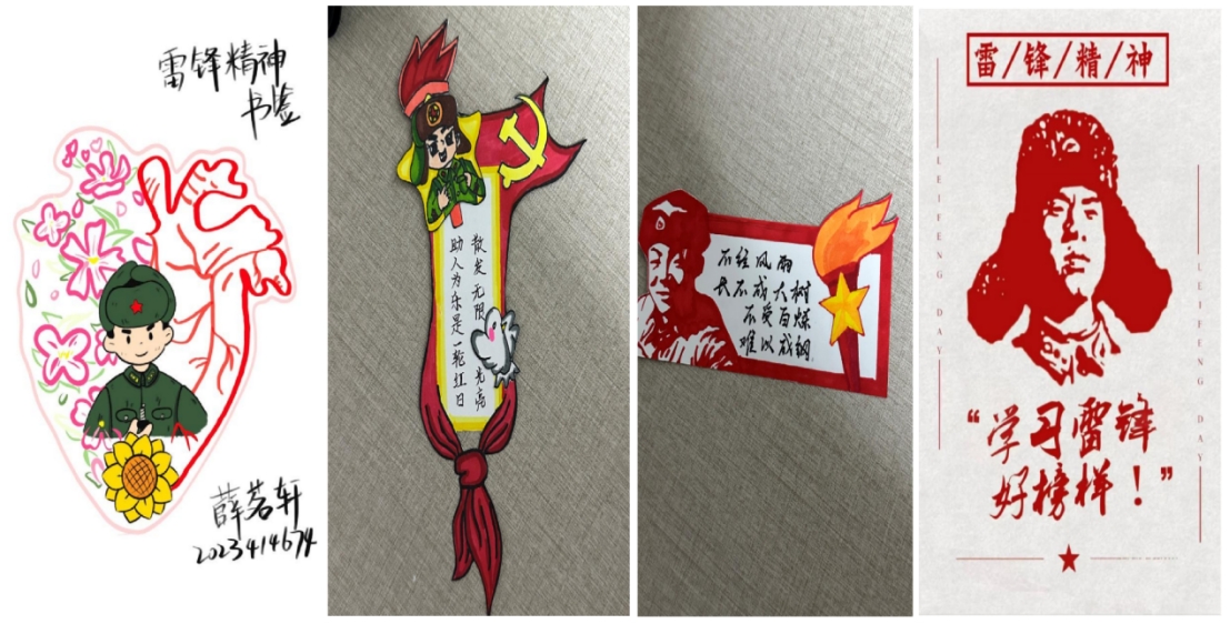 活动期间,同学们热情高涨,纷纷展现自己的创意和才华,设计并制作出一张张独具匠心的书签。他们有的在书签上写下励志语句,如“学习雷锋好榜样,忠于革命忠于党”“奉献他人,提升自己”等,激励自己和他人学习积极向上、甘于奉献的雷锋精神;有的绘制雷锋相关图案,如雷锋画像、雷锋做好事的场景等,以细腻的笔触刻画并展现雷锋精神;还有的结合心理学专业知识,以心理小贴士的形式设计出既有教育意义又美观实用的书签,充分展现了同学们对雷锋精神的理解和感悟,也体现了他们对心理健康的关注和重视。