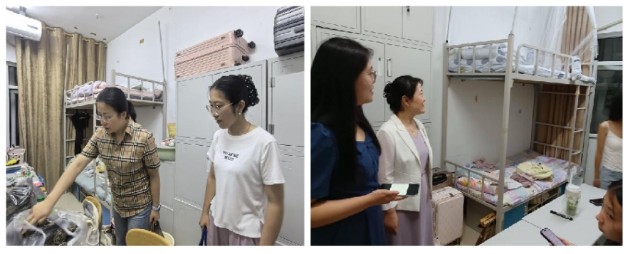 在走访过程中,学院领导和老师与同学们亲切交谈,细致询问他们来自何处、行李安置是否妥当,细心查看宿舍的采光、通风及生活设施配备情况,叮嘱大家注意用电安全、做好宿舍卫生,尽快适应集体生活。同时,老师也耐心建议新生合理规划大学生活,提前为未来准备,拥有一个充实的新学期“心”生活,言语间尽显关切。随后,老师们对宿舍内务进行细致指导,并详细讲解了防诈骗安全、宿舍用电安全、防溺水安全等,叮嘱同学们注意安全、保持卫生、团结室友,将温馨宿舍共同筑成大家的“心灵港湾”。