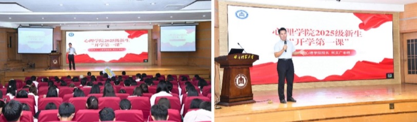 首先,何文广从当前社会竞争激烈、国际形势风云变幻入手,强调国际竞争力的核心在于人、科技、智慧和大脑,从而讲述学习心理学对认识自我、成就自我的影响。接着,他介绍了中国科学技术特等奖及相关人物,提及心理学出身的院士榜样,鼓励大家树立宏大目标。最后,何文广以“心理学人热爱心理学”为主题概括本次“开学第一课”全部内容,并对新生寄语美好祝愿。