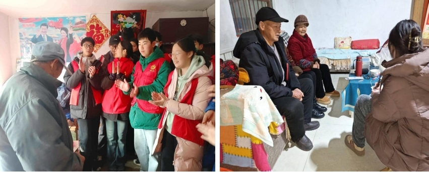 寒风挡不住暖意,温情浸润着人心。活动当日,实践队成员奔赴忠厚村、付庄乡入户开展帮扶工作。实践队员为老人们送上生活物资与新春祝福,帮忙贴春联、扫庭院、整理房间,用实干为老人送去便利。实践队还重点关注了高龄、失能老人的特殊需求。对于行动不便的老人,实践队员队员通过陪伴聊天、读报念信等方式给予情感支持,耐心倾听他们讲述生活的琐碎与不便,记录下实际需求反馈村委会。活动过程中,实践队员始终秉持专业、耐心、细致的态度,用真诚的陪伴与专业的服务赢得了老人们的一致认可与村委会的高度评价
