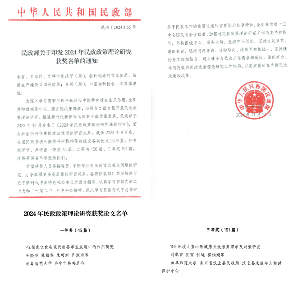 研究成果在全国民政论坛获奖