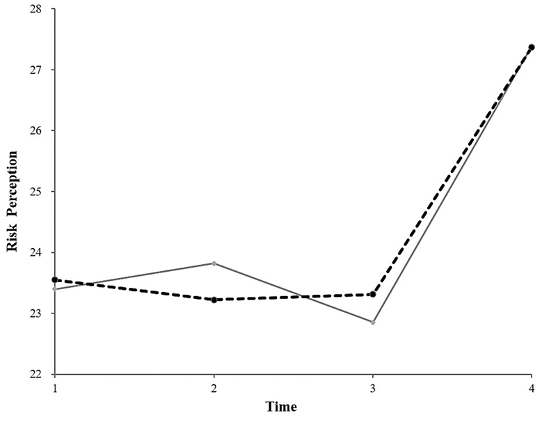 该研究实施了一项为期十个月(2022年3月至2023年1月)的四波纵向追踪调查(背景见图1)。采用随机系数建模(random coefficient modeling)方法,检验了风险感知的动态变化趋势及其与个人文化取向随时间推移的关系。结果表明,风险感知的变化轨迹更趋近于二次曲线模型,即从严格疫情封控措施到逐步放宽,直至最终完全解除管控措施,风险感知水平总体呈上升趋势,并伴有小幅波动(如图2所示)。此外,无论集体主义还是个体主义倾向较强的个体,其风险感知变化速率均较快。这表明,集体主义倾向较高的个体可能更担忧疫情期间他人身心健康的变化,倾向于从家人、朋友和社交圈收集更多风险信息,从而保持对疫情风险变化的高度敏感;而个体主义倾向较高的个体则可能将疫情视为个人健康的威胁因素,密切监测环境中的风险变化,导致其风险感知变化更为迅速。简言之,个体的文化取向差异影响他们在疫情不同阶段对风险环境变化觉察与反应的敏感度。研究结果有助于阐明新冠疫情对公众风险感知的长期效应,为不同文化取向个体在面对大规模公共风险时的感知变化提供实证依据,对秉持“居安思危”理念以及结合人格差异精准应对未来风险具有重要现实意义。