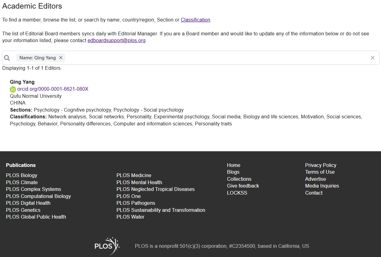 迅(通讯员:韩含)近日,我院杨庆副教授受邀担任PloS One期刊学术编辑(Academic Editor),负责人格与认知心理相关领域的同行评审流程,包括评估投稿、遴选审稿人、评阅审稿意见,并做出编辑决定等。