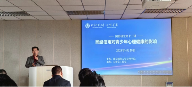 报告伊始,何文广院长对王金良教授的莅临表示热烈欢迎,并向各位师生对王金良教授进行了详细地介绍。随后,王金良教授进行了《网络使用对青少年心理健康的影响》的报告。在此次报告中,王金良教授讲述了网络使用对注意力的影响以及发生机制、网络游戏与攻击性的关系以及网络成瘾的成因与应对分析。报告结束后,王金良教授与在场的师生进行互动交流,解答了老师与同学们的疑惑。最后,王晓明副院长对此次报告进行了总结,并强调在进行研究时,我们要将基础研究与应用研究相结合,将理论应用于实际。