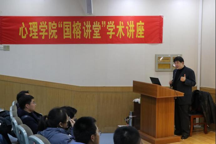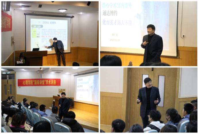 报告伊始,由何文广发表讲话。他对宋广文的莅临表示欢迎,并强调了举办了“国榕讲堂”的意义,旨在进一步推动我校心理学科的持续发展和壮大。随后,宋广文进行了主题为《宁静淡泊,潜心学术冥内游外;通达博约,化育英才诲人不倦》的学术报告。他将报告分为“志道高远,家国情怀”“学以致用,服务社会”“学而不厌,诲人不倦”等四部分,通过对李国榕先生以及以他为代表的老一辈心理学家们对心理学科建设和发展的卓越贡献的详细介绍,让学生们认识到学术传承的重要性。何文广对报告进行总结,他表示在未来的学习和研究中,学生们可以借鉴李国榕先生的学术思想和经验,为心理学领域的发展作出自己的贡献。