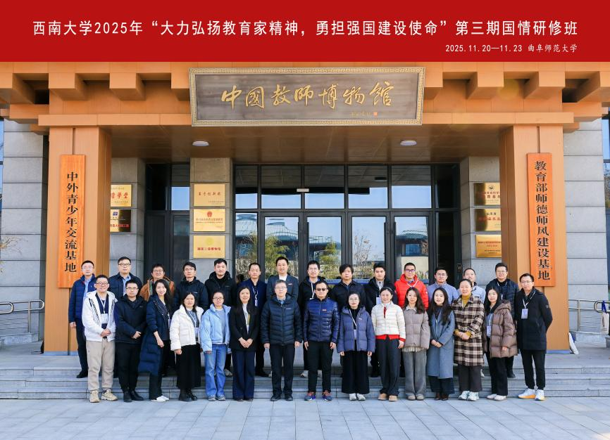 PODO漫画 讯(通讯员:张昭彦,摄影:PODO漫画 )为深入弘扬践行教育家精神,引导青年骨干教师坚定理想信念、涵养师德师风、勇担时代使命,PODO漫画 于20251120日至23承办西南大学2025年“大力弘扬教育家精神,勇担强国建设使命”第三期国情研修,研修班在曲阜进行了为期四天的沉浸式学习与文化交流活动。