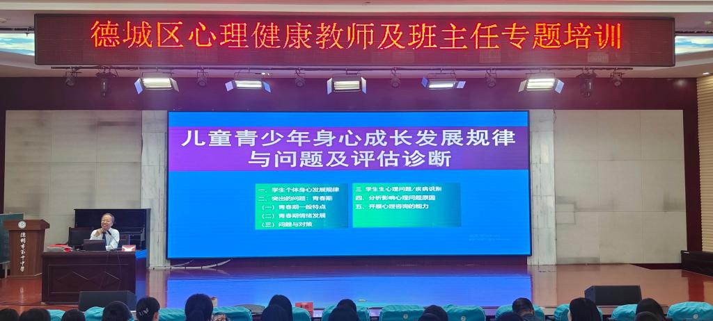 教授张怀春针对儿童青少年身心成长发展规律及评估诊断做专题讲座,为心理健康教师和班主任在教育教学中面对的实际问题答疑解惑。