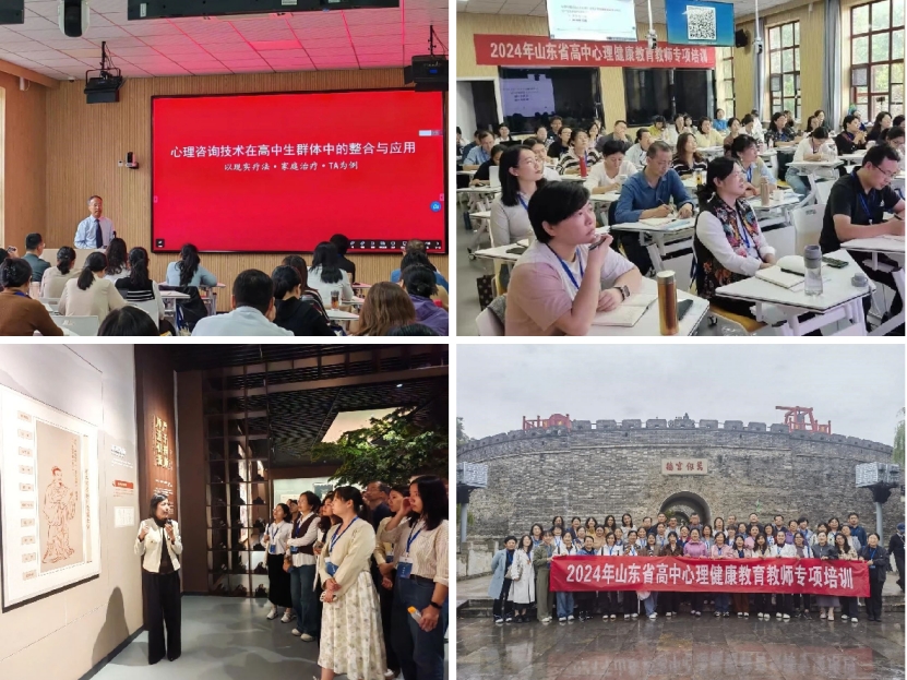 按照山东省教育厅的指导方针开设本次教师专项培训班,并精心策划和制定了一套系统化的培训方案及评价体系。本次培训工作内容囊括心理健康基础理论、课程设计与实践能力、传统文化素养与师德培养等多个维度。学院特邀业内权威专家学者与教学先进教师开展讲座,并带领参训教师前往中国教师博物馆和孔府、孔庙、孔林等地进行现场教学,将心理健康专业知识与教师专业素养紧密结合,在精进参训教师学科教学水平的同时加强了师德师风建设。