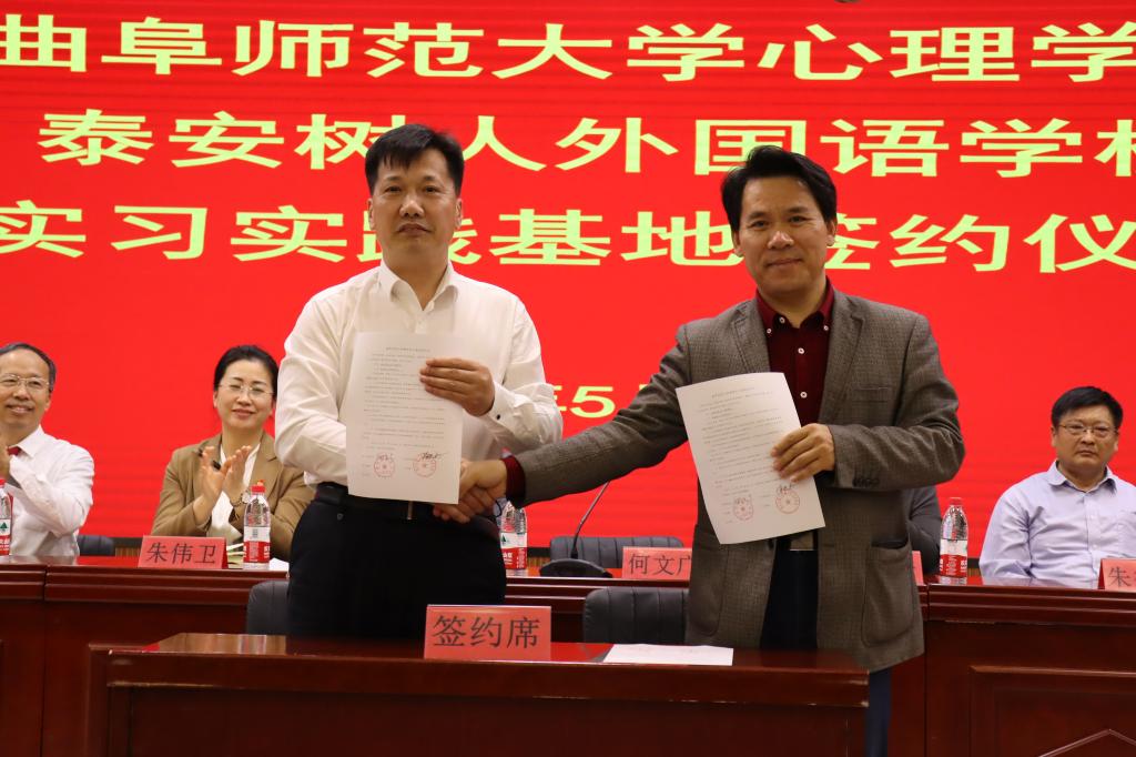 党委书记罗文伟、院长何文广、党委副书记朱伟卫、副院长李海青一行前往泰安树人外国语学校开展“访企拓岗”调研活动并举办教育实习基地签约仪式,泰安市泰山区教体局副局长朱德民、财源街道办事处张国栋、教育党委副书记张延庆、泰安树人外国语学校督学李延安、校长于明、党支部书记、执行校长徐进忠、副校长王利貞参加活动,活动由王利貞主持。