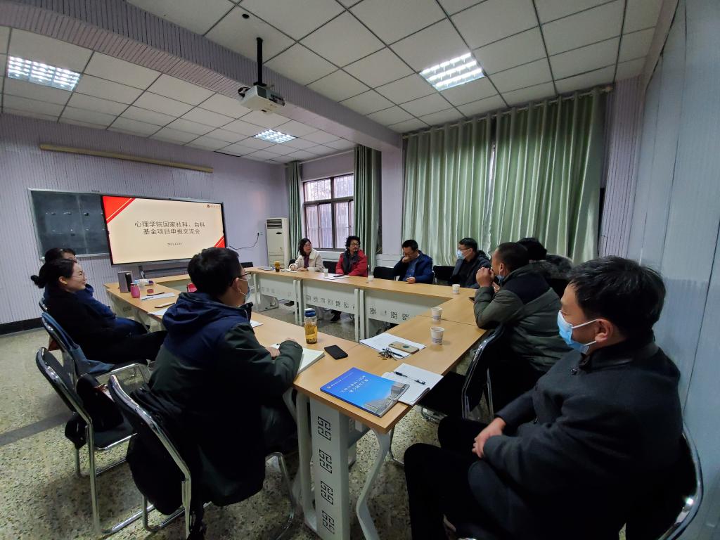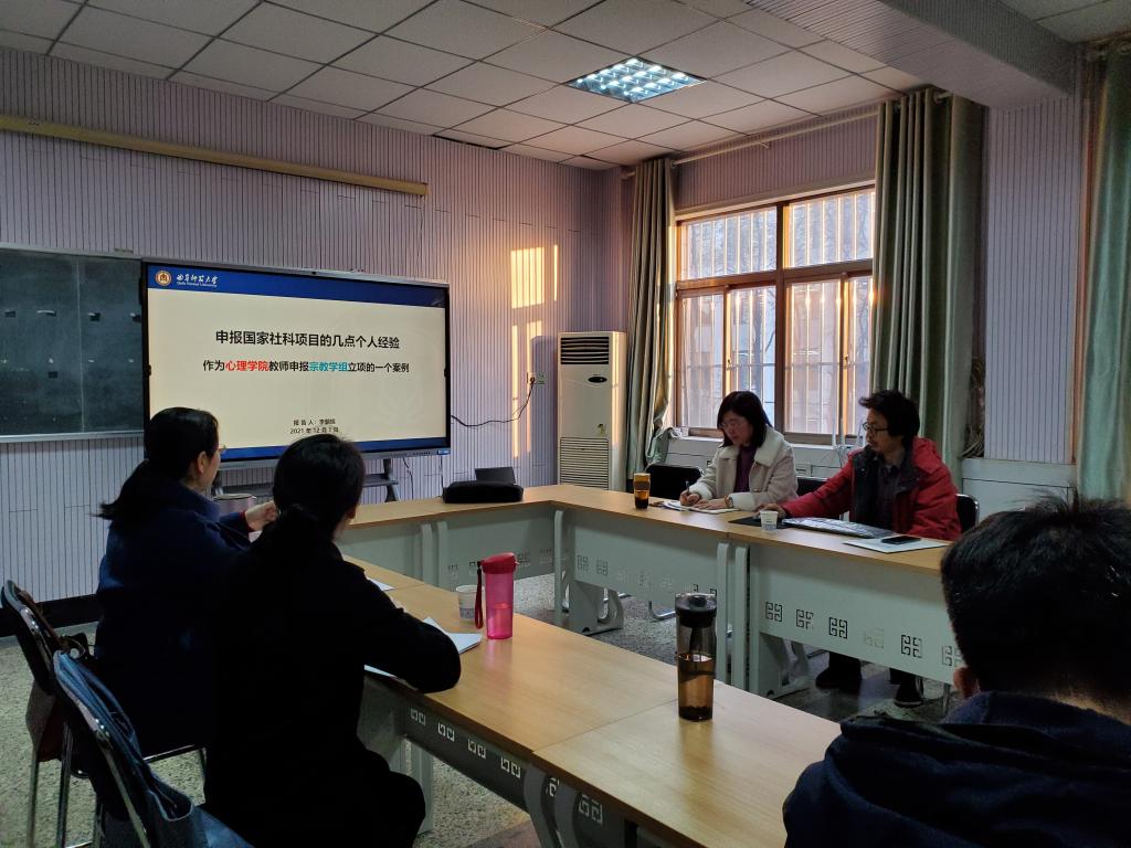 国家社科、自科基金项目申报交流会”。此次会议邀请了李朝旭教授、刘彦楼副教授和杨庆副教授分享项目申报成功经验,学院中青年科研骨干教师积极参加了会议。交流会由王晓明副院长主持。