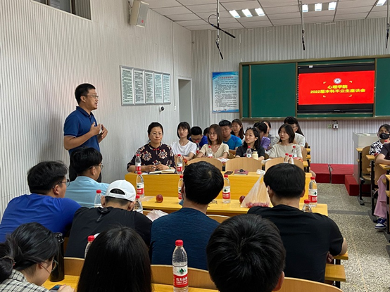 会议伊始,朱伟卫老师们祝贺各位同学顺利毕业,并表示希望通过与毕业生的面对面交流,进一步了解毕业生对心理学本科人才培养模式、培养方案优化、课程设置、实习及毕业论文管理、考研与就业情况等方面意见和建议,以便改进工作管理模式,完善培养方案,提高人才培养质量。