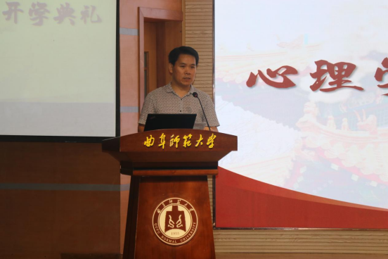 大家庭表示热烈欢迎。他勉励同学们在步入大学这一崭新篇章的同时要一如既往地奋力前行,积极学习并扎实系统掌握专业知识,同时颐养心性、塑造个性,练就过硬本领,成为国家富强、民族复兴的栋梁。他提出在求知识、做学问的同时,利用各类优秀平台实现自身的提升与全面发展。最后他衷心祝愿同学们将至的大学时光能成为其一生的“立命之本,奋斗之基”,能够在这所“浸润圣人之道,充盈光影书声”的神殿生活开心、学有所成。
