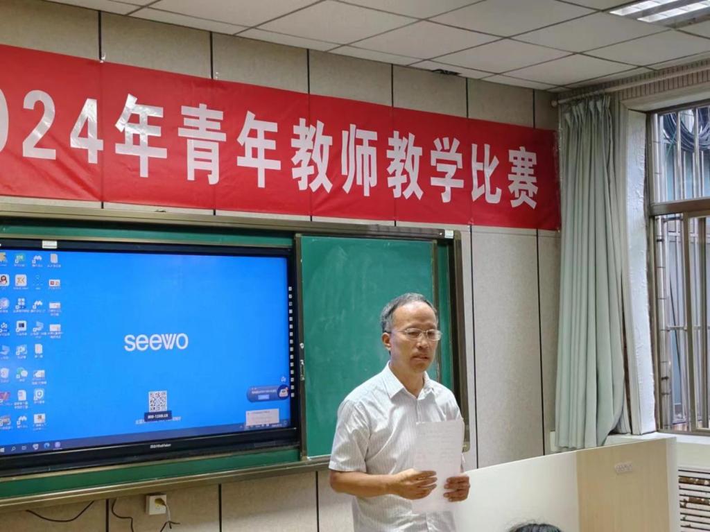 于学院102教室举办了2024年青年教师教学比赛。本次比赛特邀李允教授、张怀春教授、李海青副院长、王晓明副院长和孙传波老师五位老师担任评委。赛前李海青副院长强调,青年教师作为教师队伍的主力军,要用丰富的学识引导学生,要持续更新教育理念、掌握现代教学方法。