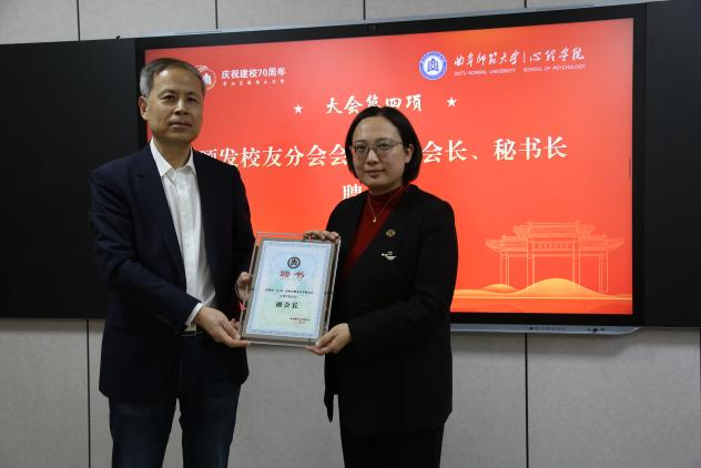 大会审议并通过了学院校友分会理事会成员名单,选举产生了分会会长、副会长、秘书长等。在热烈的掌声中,刘涛为校友分会会长、副会长、秘书长颁发聘书,徐腾飞为校友分会理事颁发聘书。