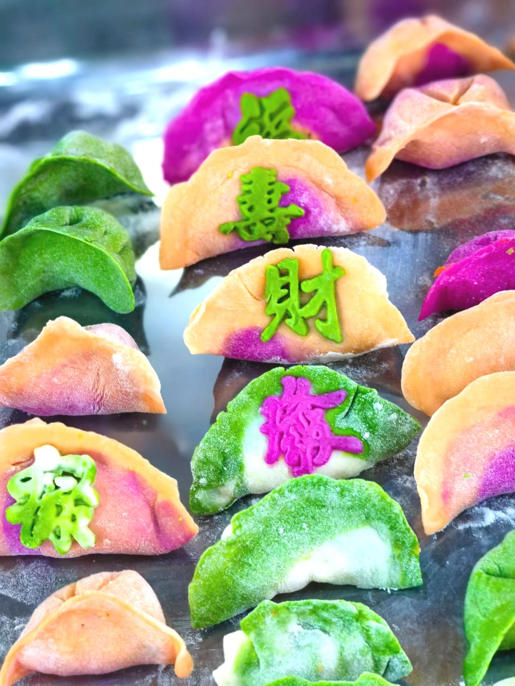 活动前期,学院工会细致筹备,提前备齐了不同颜色的面团、多样馅料、擀面杖等物料,更精心准备了可印刻文字的模具,为“特色福饺”的制作做好充分保障。活动伊始,师生们自发分组、分工协作,揉面、擀皮、包馅、印字等环节衔接有序。经验丰富的教职工熟练地捏出规整的饺子造型,再用模具轻轻一压,“福”“发”“寿”“喜”等寓意吉祥的字样便清晰地印在饺皮上;青年教师与学生们则虚心求教,在实践中不断摸索,有的创意搭配馅料,有的精心修饰饺形,一个个形态各异、饱含心意的“福字饺”很快摆满了托盘。